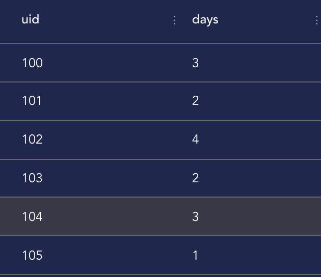 UNION ALL SELECT 104 UID,'2021-01-02' dt