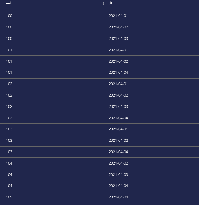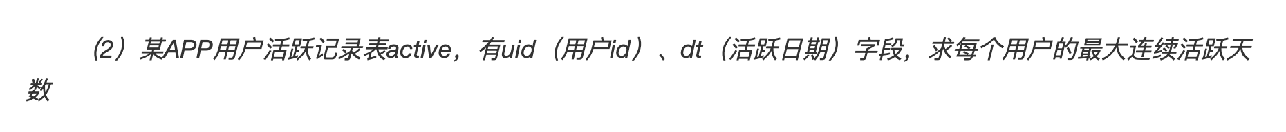 在上期的SQL题目中,我们以求连续活跃为例,讲述了lead 、lag错位相减的用法。但若不采用错位相减的花,其实也可以实现这一目的。本次我们就先讲述一下最大连续活跃天数的第二种解法,然后再讲述另一常见面试SQL题目。